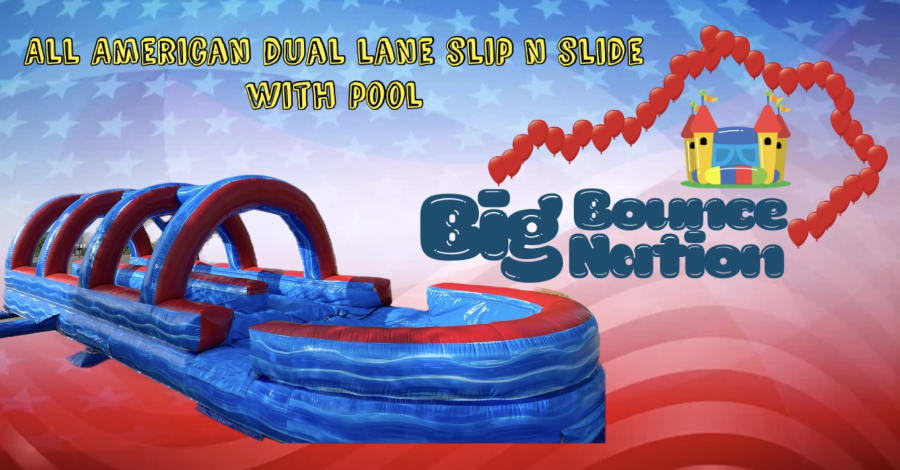 Don't miss out on the fun! Book the All American Dual Lane Slip N Slide today and create unforgettable memories with your loved ones. Get ready to slide, splash, and laugh your way through the summer!