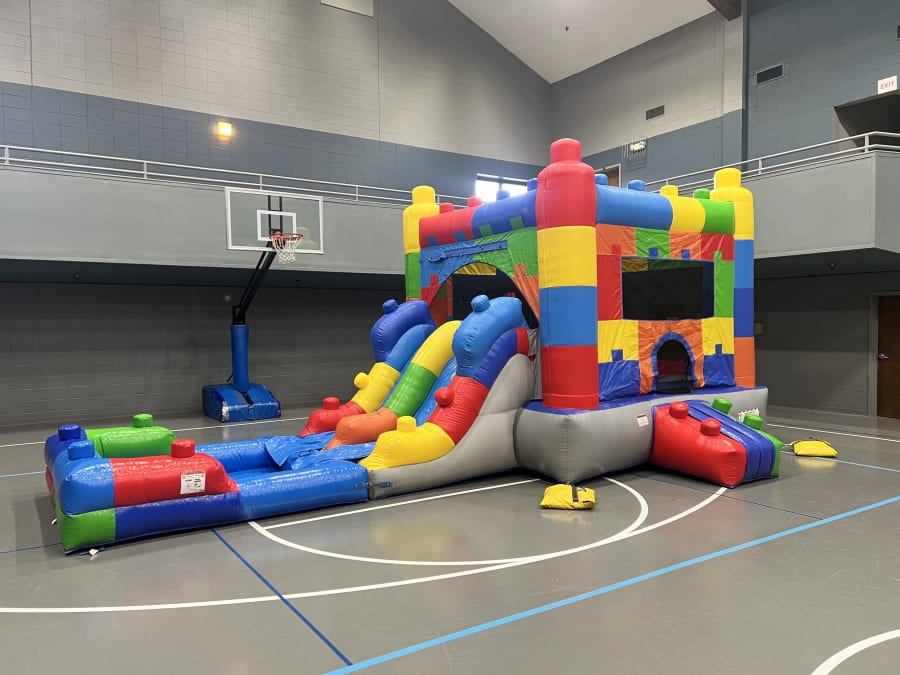 Bring big fun to your next party with the Lego theme water package. This combo unit features a towering 16ft waterslide, dual lanes for friendly races, and a deep pool landing for safe splash landings. It also includes a 13x13 bounce area with a built-in basketball goal. Perfect for birthday parties and summer events. 🌊🏀🧱