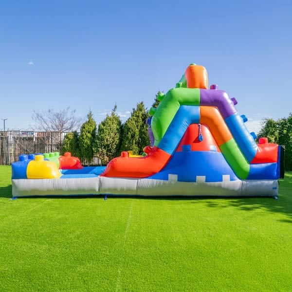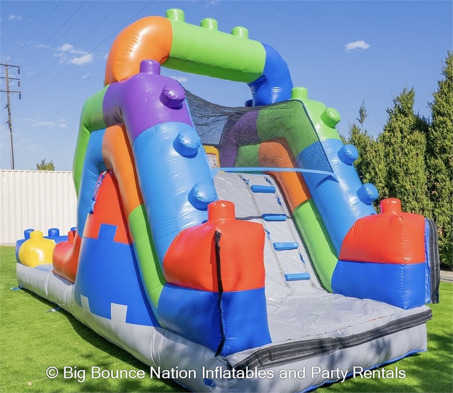 Make your next celebration unforgettable with the 12ft Lego Slide. This Lego themed slide can be used wet or dry, delivering hours of safe, high-energy fun. It stands 12ft tall, stretches 22ft long, and spans 8ft wide—perfect for bold entrances and epic slides. Waterslide rentals 12ft Lego Slide in Lexington, Nicholasville, Lancaster, Versailles, Frankfort is available for birthday parties and community events.